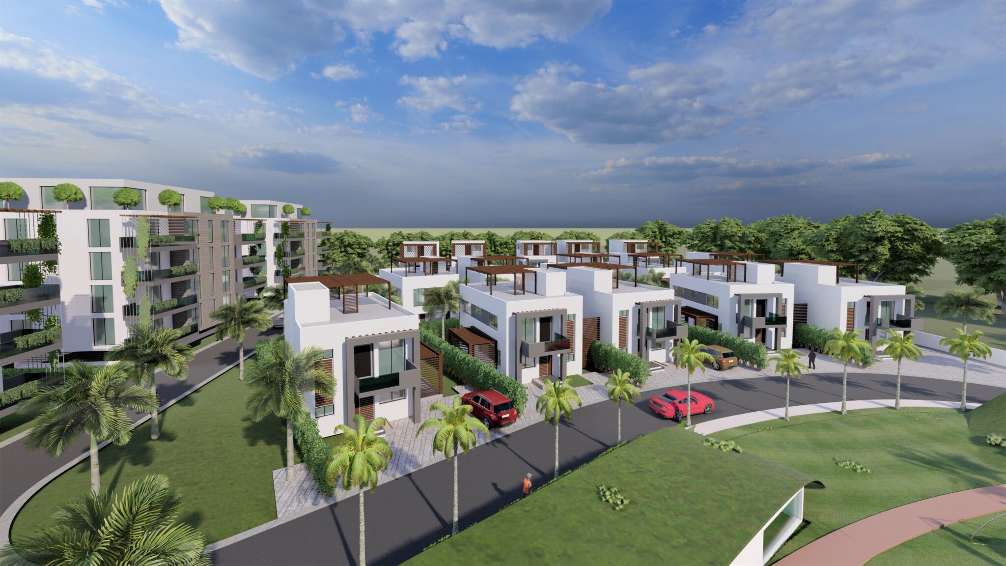 Amba Gardens combines sustainable architecture embedded into nature and energy saving features. Town houses and apartment buildings are sited in a green environment.